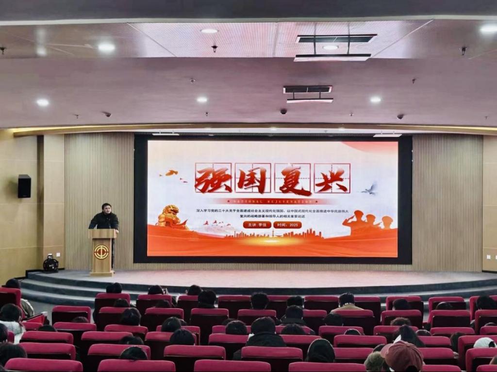 为深入学习党的二十大关于全面建成社会主义现代化强国、以中国式现代化全面推进中华民族伟大复兴的战略部署及相关重要论述,2025 年 12 月 4 日,能源化工与环境学院在学术报告厅开展 “强国复兴” 专题党课。本次党课由学生党支部书记李佳主讲,学院团员、新发展团员及入团积极分子等青年代表参与学习。